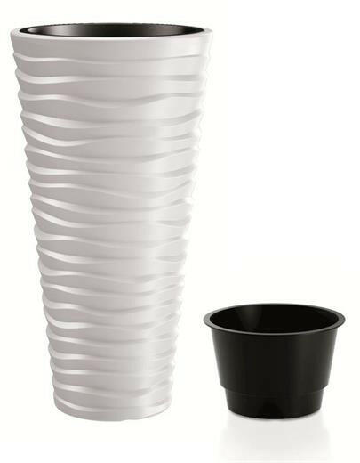 Magas virágcserép, térfogata 54 l, hullámos textúrájú kialakítás, kül- és beltérre egyaránt alkalmas, praktikus betétet tartalmaz a növények ültetéséhez, méretei 39 x 75 x 39 cm, fehér színű. Tedd a beltéri vagy a kültéri növényeidet a Prosperplast cégtől származó SAND SLIM magas virágcserepébe. Vagy ültess bele fiatal palántákat. A cserép magas minőségű m