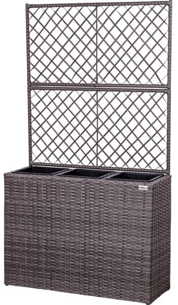 Termék részletekEgy gyönyörű állvány három virágcserephez igazi dísze lesz otthonának. Az edények két rácsot is tartalmaznak, amelyek megfelelnek a futó növények számára is és természetes zöld falat hozhat létre. Az állvány ideális kertben, teraszon vagy erkélyen történő ültetéshez. Az anyag meggyőzi kitűnő tulajdonságairól: ellenáll az időjárásnak, az UV sugárzásnak, tasz