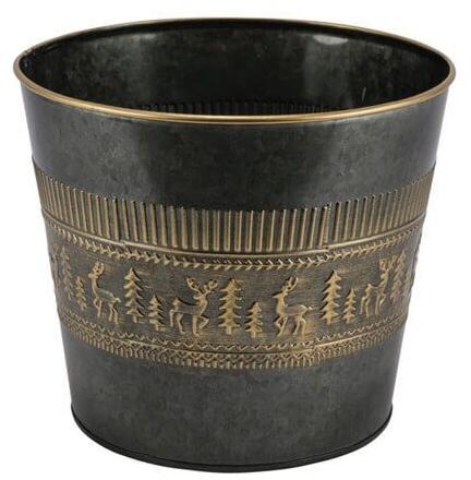 Ez a bronzos szarvasmintával díszített, cinkből készült virágedény elegáns választás, amely tökéletesen illik bármely ünnepi vagy rusztikus stílusú enteriőrbe. A 13x12,5x13 cm méretű kaspó ideális kisebb növények vagy dekoratív virágkompozíciók számára, amelyekkel könnyedén varázsolhatunk természetes és ünnepi hangulatot az otthonunkba. Fém anyaga tartóssá é