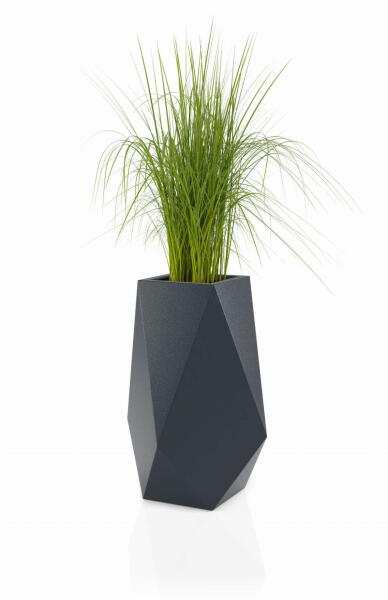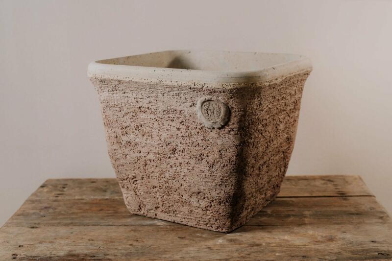 Időtálló műanyagból készült virágcserép, amely beltéren és kültéren is elhelyezhető. Ellenáll a szélnek és a fagynak is. Felületét beton hatású mintázat díszíti.