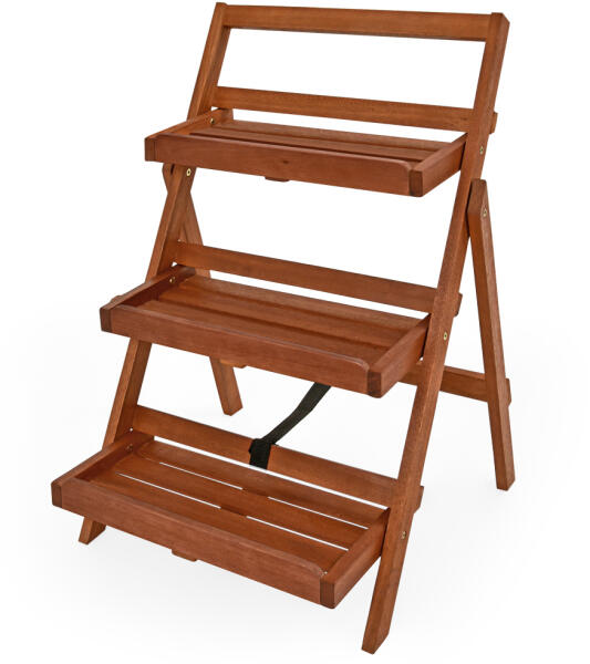 Ez a viráglétra praktikus és dekoratív módja a növények kertben, erkélyen vagy teraszon történő elhelyezésének. Három polcának köszönhetően elegendő helyet biztosít virágainak vagy gyógynövényeinek. Amikor a viráglépcső nincs használatban, a helytakarékosság érdekében összecsukhatja és tárolhatja. A termék előnyei: - fából készült dekoratív létra - össze