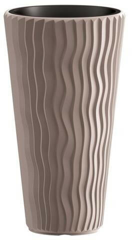 Magas virágcserép, térfogata 37 l, hullámos textúrájú kialakítás, kül- és beltérre egyaránt alkalmas, praktikus betétet tartalmaz a növények ültetéséhez, méretei 34,9 x 62 x 34,97 cm, mokka színű. Tedd beltéri vagy kültéri növényeidet a Prosperplast SANDY SLIM magas virágtartóba . Vagy ültess bele fiatal palántákat. A cserép minőséges műanyagból készült. A ho