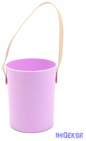 Átmérője kb 10,5 cm, magassága 13,5cm + fül. Műanyag kaspó bőr füllel