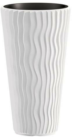 Magas virágcserép, térfogata 45 l, hullámos textúrájú kialakítás, kül- és beltérre egyaránt alkalmas, praktikus betétet tartalmaz a növények ültetéséhez, méretei 39 x 70,8 x 39 cm, fehér színű. Tedd beltéri vagy kültéri növényeidet a Prosperplast SANDY SLIM magas virágtartóba . Vagy ültess bele fiatal palántákat. A cserép minőséges műanyagból készült. A homo