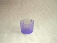 Lila színű, műanyag, szirom formájú virágtartó kaspó. Az átmérője 80 mm.