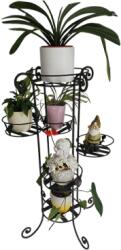 A fekete színű kovácsolt vas virágtartó 6 virágtartó kosárba lehet belehelyezni a kaspós virágokat. Méretei: 55 x 100 x 55 cm.