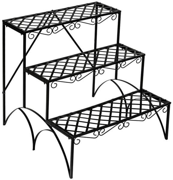 Összecsukható ívelt kovácsoltvas virágtartó állvány, 3 polcos, 114 cm (BPH88)