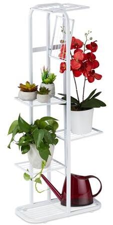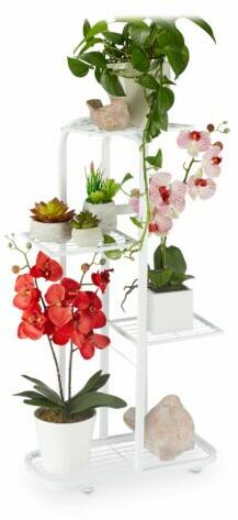 LANGEN Acél Virágtartó A virágállvány polcai lépcsőzetes kialakításúak, így ha az egyik növénye magasabb és több helyre lenne szüksége, könnyen megoldható. 5 Szintes dekoratív virágtartó. Acélból készült. Terhelhetősége: max. 15 kg Teljes mérete: Verzió 1: 75 x 56 x 23 cm (Ma x Szé x Mé) Verzió 2: 75 x 49 x 23 cm (Ma x Szé x Mé) Polcok mérete: 1. polc: 48 x 21