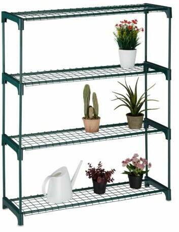 Jaran Virágtartó Állvány 4 emeletes kivitel Bővíthető kivitel (akár több termék is egymásra építhető tetszés szerint) Beltéri használatra alkalmas Szerszámok nélkül könnyedén össze- és szétszerelhető Masszív acél alapanyagból Jelentős mennyiségű hely a cserepes növények részére a polcokonTeljes Mérete: kb. 109 x 91 x 28,5 cm (Ma x Sz x Mé)Polcok mérete kb. 82