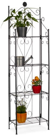 GIROT Összecsukható Fém Virágtartó Állvány 4 szintes. Összehajtható virágtartó állvány. Alkalmas beltéri és kültéri használatra egyaránt. Maximális terhelhetősége szintenként: 5 kgTeljes mérete: 157 x 44 x 24 cm (Ma x Szé x Mé)Súlya: kb. 5,2 kg Anyaga: fém