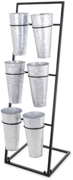 - Fém szerkezetű virágcserép 5 db terrakotta cseréppel. A karjai a tengelye körül forognak. - Nincs vízelvezetése. - Méretek: 29 x 38 cm.