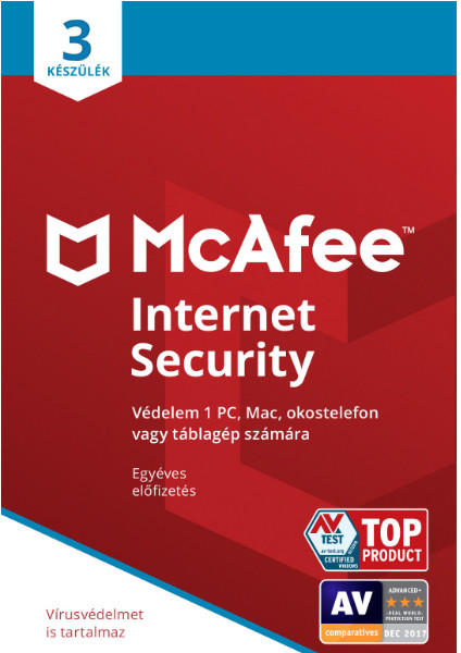 Termékleírás: McAfee® Internet SecurityMegbízható víruskereső és online védelem akár 1 eszközhöz: PC-k, Mac-ek, okostelefonok és táblagépek egyetlen előfizetéssel AMcAfee® Internet Security digitális védelemmel nyújt nyugalmat a fogyasztók számára szerte a világon, beleértve a díjnyertes antivírus-védelmet a PC-k és a Mac-ek számára és mobil eszközök. Gyors tele