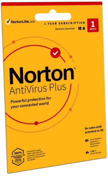 Eszközök száma: A Norton AntiVirus Plus 1 PC vagy Mac®-gép számára biztosít védelmet Kémprogramok, vírusok, kártevő programok és zsarolóprogramok elleni védelem 2 GB Felhőalapú biztonsági mentés PC-hez Tűzfal PC-hez és Mac-géphez Password Manager 100%-os Vírusvédelmi Ígéret