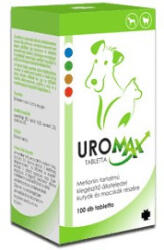 Az Uromax egy metionin tartalmú kiegészítő állateledel. Jellemzők : - Hozzájárul a májfunkció kiegyensúlyozott működéséhez. - Segíthet a máj- és a vesebetegségek kiegészítő terápiájában is. - A metionin a szervezet számára nélkülözhetetlen esszenciális aminosav, amelyet a szervezet nem képes előállítani, így kedvence az eledelen keresztül tudja fedezni a szüks