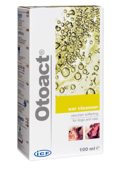 Otoact fültisztító oldat Szkvalént és szalicilsavat tartalmazó fültisztító folyadék kutyák és macskák részére, mely fellazítja a hallójáratban található váladékot. ÖSSZETÉTEL: · Szkvalén · Chamomilla recutita virág kivonat · Tanninsav · Szalicilsav JAVALLAT: Az Otoact innovatív összetételének köszönhetően gyengéden feloldja a nagy mennyiségű fülváladékot.