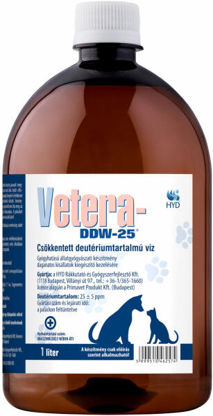 A Vetera-DDW-25 csökkentett deutériumtartalmú víz egy gyógyhatású állatgyógyászati készítmény daganatos betegségben szenvedő kisállatok kiegészítő kezelésére. Alkalmazásával a kezdeti stádiumú rosszindulatú daganatok esetében 70-80%-os gyógyulási arány érhető el, a tünetmentesség elérése után kúraszerű alkalmazásával jelentősen csökkenthető a betegség k