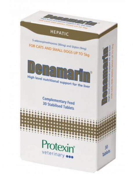 Protexin Denamarin Small Májvédő Tabletta Macskának és Kistestű kutyának 30db Ha a májfunkció károsodik, a pontos okot gyakran nehéz meghatározni. A máj támogatása az októl függetlenül elengedhetetlen a megfelelő működéshez. A denamarin SAMe-t (S-adenozil-metionint) tartalmaz , amelyről kimutatták, hogy jelentősen növeli a májban a glutation szintjét, amely a SAMe metab