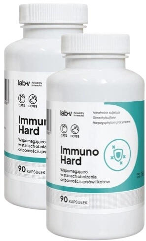 Az Immuno Hard különösen ajánlott a legyengült immunitású, gyakori fertőzéseknek kitett vagy lábadozó állatok számára. Olyan összetevőket tartalmaz, amelyek erősítik és serkentik az immunrendszert, hogy jobban működjön, javítsák az általános kondíciót és segítsenek felgyorsítani a gyógyulást. Kivételes támogatást nyújt azoknak a kutyáknak és macskáknak, amel