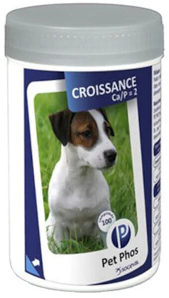 Pet Phos® Growth Ca/P=2 Dog ízesített tabletta egy vitamin- és ásványianyag-tartalmú készítmény a házikoszton tartott növekvő kutyák és szoptató szukák számára. Pet Phos® Growth Ca/P=2 Dog ízesített tabletta egy vitamin- és ásványianyag-tartalmú készítmény a házikoszton tartott növekvő kutyák és szoptató szukák számára. Felhasználási cél: Kiegészítő áll