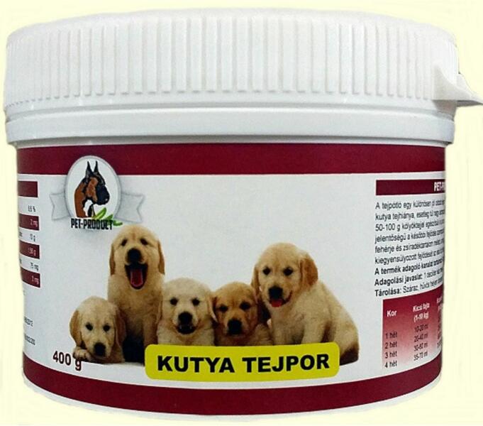 Pet Product tejpótló tejpor kiskutyáknak akár 0 perces kortól isAdagolás A terméken található táblázat szerintNettó súly 400g