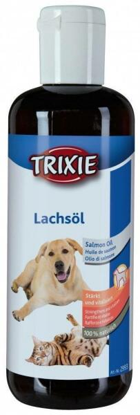 Trixie Salmon Oil 250 ml - Termékleírás A lazacolaj egészséges kiegészítője a kutyák és macskák étrendjének. Segít gondoskodni kedvence egészségéről és nagyszerű megjelenéséről. 100 %-ban lazacolajból készült természetes termék. Gazdag esszenciális telített és telítetlen zsírsavakban (Omega 3 és Omega 6). Felpörgeti az anyagcserét és segít regenerálni a szár