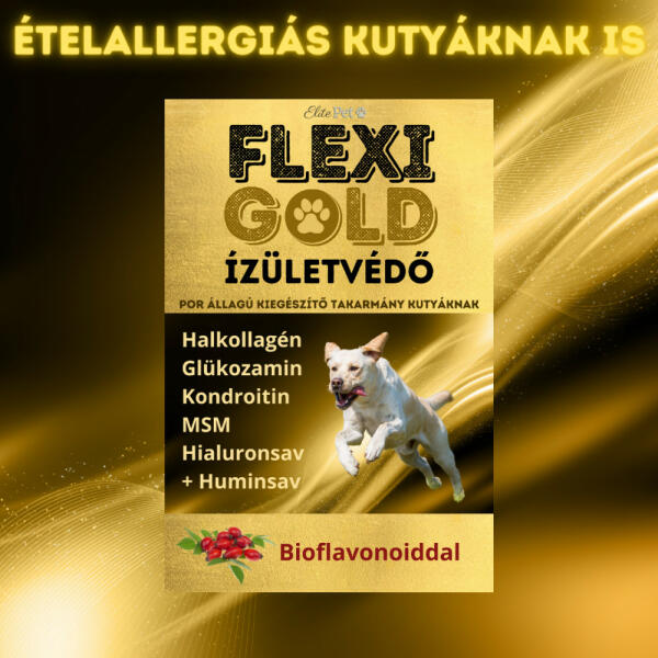 FLEXI GOLD Ízületvédő Ízületvédő, mely allergiás kutyáknak is adható Halkollagént tartalmaz marha-és sertéskollagén helyett Hialuronsavval Bioflavonoiddal Hidrolizált huminsavval (erősíti az ízületvédő hatását) Glükozamin, Kondroitin, MSM az ízületek védelméért A FLEXI GOLD Ízületvédő az ételallergiás kutyák speciális igényeinek figyelembevételével lett kif