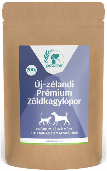 Prémium táplálékkiegészítő kutyáknak és macskáknak Új-Zélandról importált, teljes (nem zsírtalanított) zöldkagylóból készült Fenntartható forrásból származik, ellenőrzött tisztaságú Természetesen gazdag glükozaminoglikánokban (GAG – a porcok, az ízületi folyadék és egyéb kötőszövetek építőelemei), fehérjékben, nyomelemekben és értékes zsírsavakban