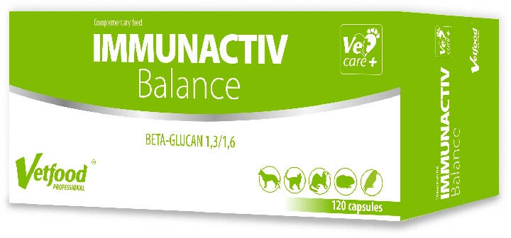 VETFOOD Immunactiv Balance 120tab - Termékleírás Az Immunactiv Balance egy immunrendszert támogató termék kutyák, macskák és kisállatok számára. Béta-glükánt (1,3/1,6) tartalmaz, amely egy poliszacharid, amely a Saccharomyces cerevisiae élesztő sejtfalából származik, és egyedülálló immunerősítő tulajdonságokkal rendelkezik. A béta-glükán aktiválja az állat immunren