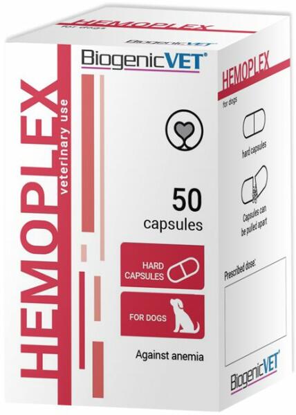 Takarmány kiegészítő a látható anémiás tüneteket mutató kutyák részére. Atermék tartalmazza a szükséges anyagokat a hematopoezishez. A HEMOPLEX-et a regeneratív anémiánál és az autoimun hemolitikus anémiánál kell alkalmazni. Babeziózis, a lépeltávolítás után. Elősegíti a csontvelő funkciójának a működését, ellátja könnyen hasznosuló vassal, erősíti a vö
