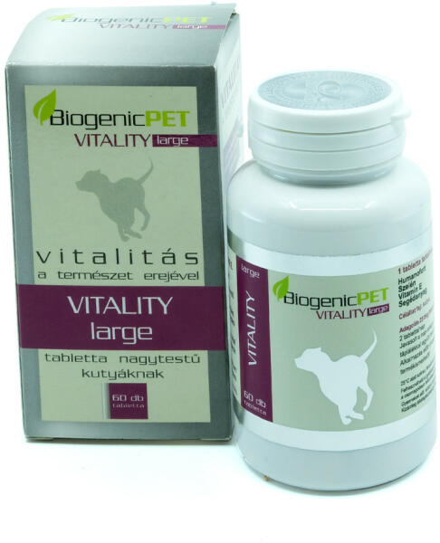 BiogenicPet Vitality Dog Large 60db A BiogenicPet Vitality természetes módon emeli a vitalitást, erős és egészséges immunrendszert biztosít, ami elengedhetetlenül szükséges a kutyák egészségéhez. A BiogenicPet Vitality a kutya szervezetét megújító természetes erő. Aktív hatóanyagai révén regenerálja a sérült vagy gyulladt szöveteket, vitalizálja az öregedő sejteket,