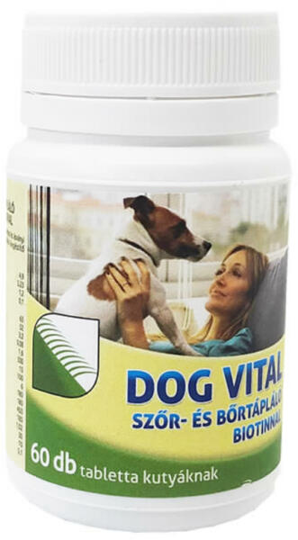 DOG VITAL Szőr- Bőrtápláló Tabletta Biotinnal javallata: A biotin bioaktív vegyület, aminek fontos szerepe van a szénhidrátok és zsírok anyagcseréjében és befolyásolja a bőr zsírtartalmát. Biotin hiány esetén a bőr szürkés, a szőr fénytelen lesz és a körmök töredezni kezdenek. Az optimális ellátás nélkülözhetetlen valamennyi korcsoportban és hozzájárul a bőr