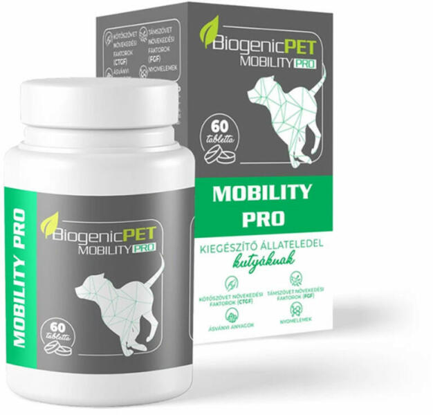 A BiogenicPet Mobility Pro tabletta további jellemzői: Az ízület működőképességének kulcsa a napi szintű kollagénpótlás és a sérült kötőszövetek regenerálása. Ehhez nélkülözhetetlen a Kötőszövet-Növekedési-Faktorok (CTGF) alkalmazása, amelyek klinikailag igazoltan képesek serkenteni az ízületek regenerációs folyamatait, ezáltal csökken az ízületi gyulladás,