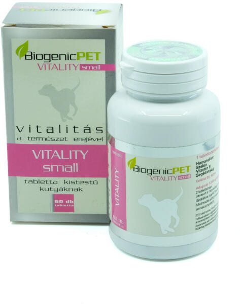 BiogenicPet Vitality Dog Small 60db A BiogenicPet Vitality természetes módon emeli a vitalitást, erős és egészséges immunrendszert biztosít, ami elengedhetetlenül szükséges a kutyák egészségéhez. A BiogenicPet Vitality a kutya szervezetét megújító természetes erő. Aktív hatóanyagai révén regenerálja a sérült vagy gyulladt szöveteket, vitalizálja az öregedő sejteket,