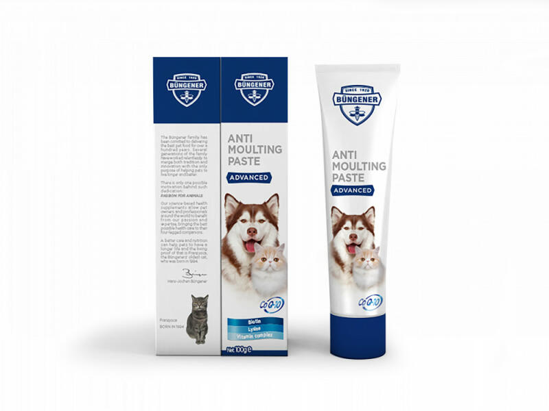 Speciális összetételű paszta a vedlési folyamat felgyorsítására kutyák és macskák részére. Speciális összetételű készítmény a vedlési folyamat felgyorsításához kutyák és macskák részére. Hozzájárul a szőrhullás megelőzéséhez és a vedlési időszak csökkentéséhez. Telítetlen zsírsav tartalma elősegíti a tökéletesen fénylő és dús szőrzet kialakulás