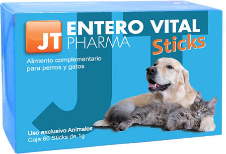 A JTPharma Entero Vital Sticks egy kutyák és macskák számára készült por állagú készítmény tasakos kiszerelésben. Megszüntetheti az akut vagy krónikus hasmenés kellemetlen tüneteit, regenerálhatja a normál baktériumflórát, kiszoríthatja a kórokozó baktériumokat, regenerálhatja a bélhám sejtjeit, növeli az ürülék szárazanyag tartalmát, ezáltal javítva az ürül