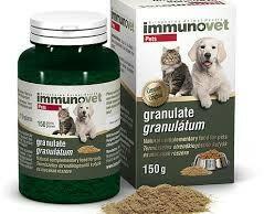 Az Immunovet granulátum eledelbe keverhető étrend-kiegészítő készítmény kutyák és macskák részére. Tapasztalataink szerint a granulátumot a macskák a termék könnyebben fogyasztható por állaga miatt szívesebben fogyaszt ják. Az Immunovet készítmények támogat ják az egészséges állapot fenntartásá t , segítenek a stresszhelyzetek ben, illetve a kisállat egyéb legyen