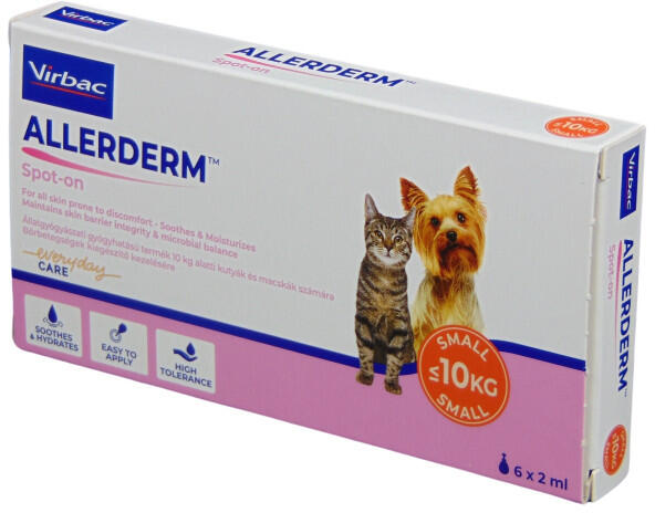 Az Allerderm Spot-on egy egyedülálló emulzió, amely segít a sérült bőr helyreállításában, valamint nyugtatja és hidratálja az irritált bőrt. A kiegyensúlyozatlan bőrű kutyák és macskák számára készült Allerderm cerumidok és zsírsavak egyedülálló keveréke, amely segít helyreállítani a bőr természetes védekezőképességét, ami segít csökkenteni a gyakori all