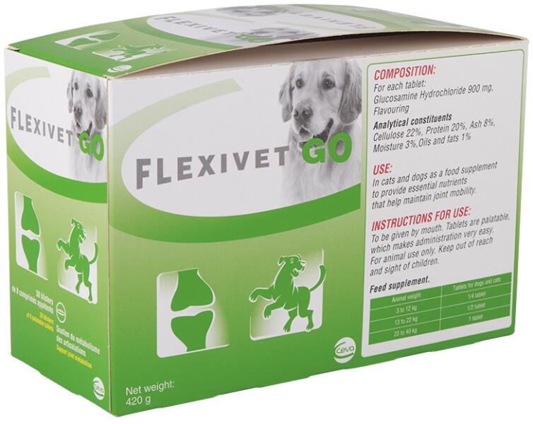 Összetevők:Egy 1671 mg-os ízesített tabletta 900 mg glükózamin-hidrokloridot tartalmaz. (Ez megfelel 747 mg glükózaminnak. ) Célállat faj: kutya Javallat: Használata különösen ajánlott idős kutyák részére, mivel a kor előrehaladtával az ízületek „elhasználódása" fájdalom kialakulásához, illetve az ízületek mozgathatóságának csökkenéséhez vezet. Túlsúlyos ku