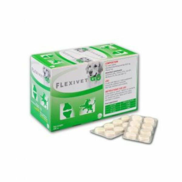Ízesített tabletta kutyák táplálékának kiegészítésére, az ízületek egészségéért . Összetevők: Egy 1671 mg-os ízesített tabletta 900 mg glükózamin-hidrokloridot tartalmaz. (Ez megfelel 747 mg glükózaminnak. ) Beltartalom: - Nedvesség: 3 % - Nyerszsír: 1 % - Nyershamu: 8 % - Nyersrost: 22 % - Nyersfehérje: 20 % Leírás: A Flexivet Go ízesített tabletta hatóanyaga a gl
