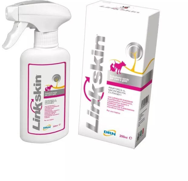 A Linkskin spray egy állatgyógyászati gyógyhatású termék kutyák és macskák részére, amely megerősíti a bőr mikroflóráját. A Linkskin spray egy állatgyógyászati gyógyhatású termék kutyák és macskák részére, amely megerősíti a bőr mikroflóráját. Javallat : Atópiás, illetve egyéb kóroktanú bőrelváltozás kiegészítő kezelésére alkalmazható. Támogatja