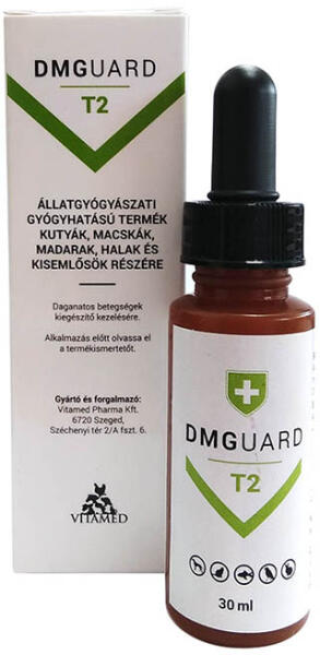 Roboráló és immunerősítő folyadék, Taurinnal kutyák, macskák, halak, kisemlősök és díszmadarak részére. A jól bevált DMGuard mellett a DMGuard T2 új összetevőkkel ( Taurinnal)és új ízzel támogatja kedvenceink immunrendszerét. Összetevők: Összetétele (1 ml): - 125 mg N, N-dimetil-glicin (DMG) - 10 mg taurin - 1 mg kálium-orotát Dimetil-glicin: - metildonorként részt