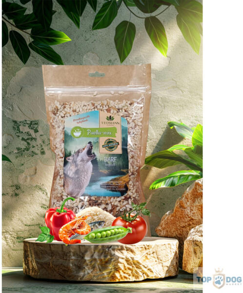 A hal-paella főként rizsből áll, mivel nagyon könnyen emészthető, ezért optimális alapélelmiszer és húskiegészítő. Sok szárított halat és garnélarákot is tartalmaz, ideális és egészséges fehérjeforrás. A hal D-vitamint, esszenciális zsírsavakat is tartalmaz (erősíti az immunrendszert), és jó arányban tartalmaz kalciumot, foszfort és nátriumot. Barf halpaellával