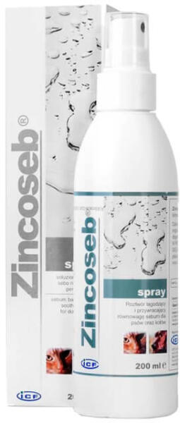 A Zincoseb spray egy faggyútermelést szabályzó – azt helyreállító –, hidratáló spray viszkető és/vagy korpás (seborrhoea) bőrre kutyáknak és macskáknak. Viszketéscsillapító hatású. Kutyák és macskák viszkető és/vagy korpázó bőrelváltozásainak kiegészítő kezelésére, gyógyhatású termék. Stimulálja a bőr regenerációs képességét seborrhoea és korpás