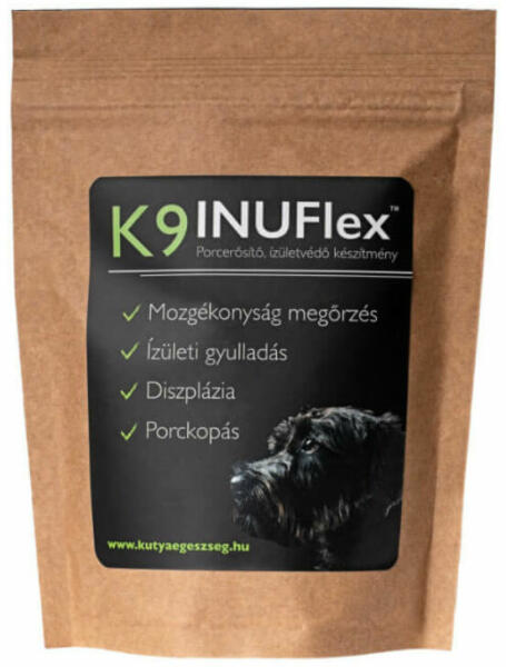 A K9 Inuflex egy minőségi porc- és ízületvédő táplálékkiegészítő kutyusoknak. Természetes fájdalomcsillapító összetevőket, zöldkagyló kivonatot és gyógygombát tartalmaz. - Ideális különböző kötőszövetek (csont, porc, ízület, stb. ) gyulladása, sérülése esetén kiegészítő kezelésként. Segít a fájdalom csökkentésében és a regenerációs időszak lerö