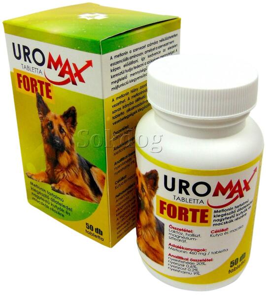 Metionin tartalmú táplálék kiegészítõ, mellyel a vizelet pH-ja savas irányba állítható be, így az UROMAX Forte tabletta alkalmazásával, segíthet a máj- és a vesebetegségek kiegészítõ terápiájában.