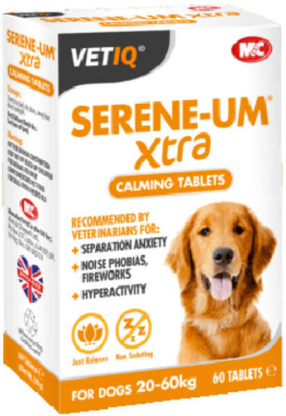 Mark and Chappell VetIq Serene-UM extra 20-60kg tabletta – Hyperaktív, ideges, agresszív nagytestű kutyák nyugtatására, lecsendesítésére szolgáló tabletta, állatorvosok ajánlásával utazásra, tűzijáték és viharok eseténAz Egyesült Királyság legkiválóbb viselkedéskutatója, Sara Whitaker ajánlásával: "A Serene-Um a legjobb természetes megoldás a hyperaktív, vagy st