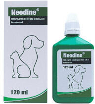 Bőr és seb fertőtlenítő szer kutyák és macskák részére. Bőr és seb fertőtlenítő szer kutyák és macskák részére. Javallatok : Ép, szőrtelenített bőrfelszín vagy nyálkahártya fertőtlenítésére, például műtét, biopszia, injekció, pungálás vagy vérvétel előtt. Aszeptikus sebkezelésre, égések vagy bőrfertőzések kezelésére. Hatóanyag : Povidon-jód 100 mg