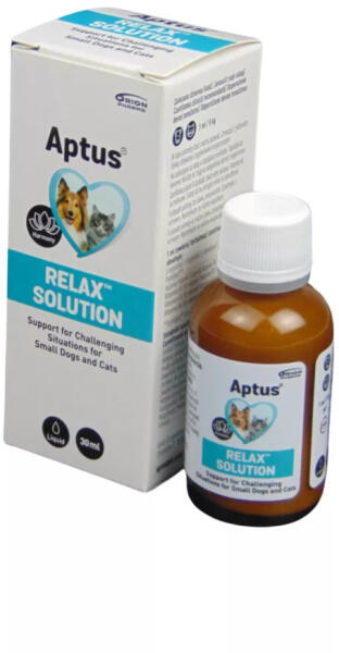 Aptus Relax Solution folyékony nyugtatóoldat – Gyorsan ható – akár 60 perccel a várható stresszhelyzet előtt alkalmazható nyugtató komplexet tartalmazó nyugtatóoldat, kutyák és macskák számára, a kiegyensúlyozott magatartás megőrzésére bármely stresszhelyzetben. Nyugodt, kiegyensúlyozott viselkedést és tanulási folyamatokat támogató kiegészítő takarmány. Aptus R