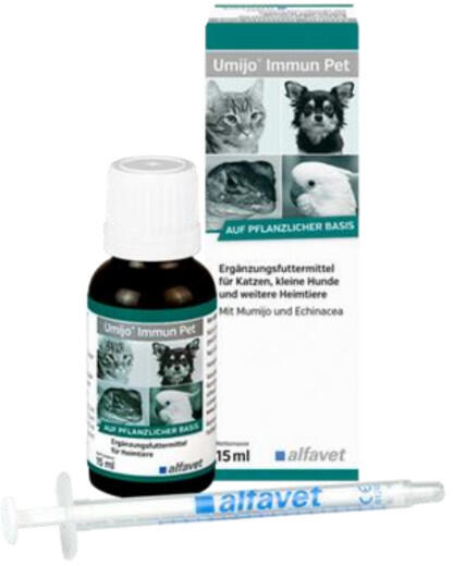 Az Umijo® Immun Pet fő összetevője egy egyedülálló természetes anyag, a mumijó. A mumijó szerves és szervetlen anyagok keveréke, mintegy 26 mikroelemet, 10 fémoxidot, aminosavakat, vitaminokat, foszfolipideket és egyéb biológiailag aktív anyagokat tartalmaz. Kiváló roboráló hatású, fokozza a teljesítményt és a szervezet ellenálló képességét. Az Umijo® Immun Pet gyó