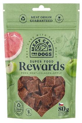 REWARDS DOG sertéshús kollagénnel és almával, 80 g, Sertéshús magas természetes kollagén tartalommal az egészséges ízületekért és csontokért. kutyacsemege gabona nélkül hozzáadott cukor nélkül mesterséges színezékek nélkül min. 85 % friss alapanyagokKollagén: - fenntartja az egészséges ízületeket és csontokat - nagyon alkalmas csemege nagytestű kutyafajták számá